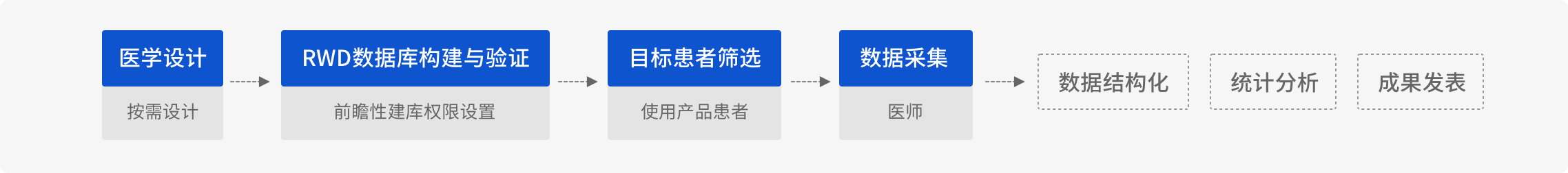 需要专业化医学团队提供一站式、全流程研究执行服务;能够基于该阶段的研究目的进行定制化方案设计;提升药物临床试验效率,以科学、准确、合规的方式完成临床试验数据搜集、整理、验证;同时保证流程规范、风险控制、周期时效、成本控制等。