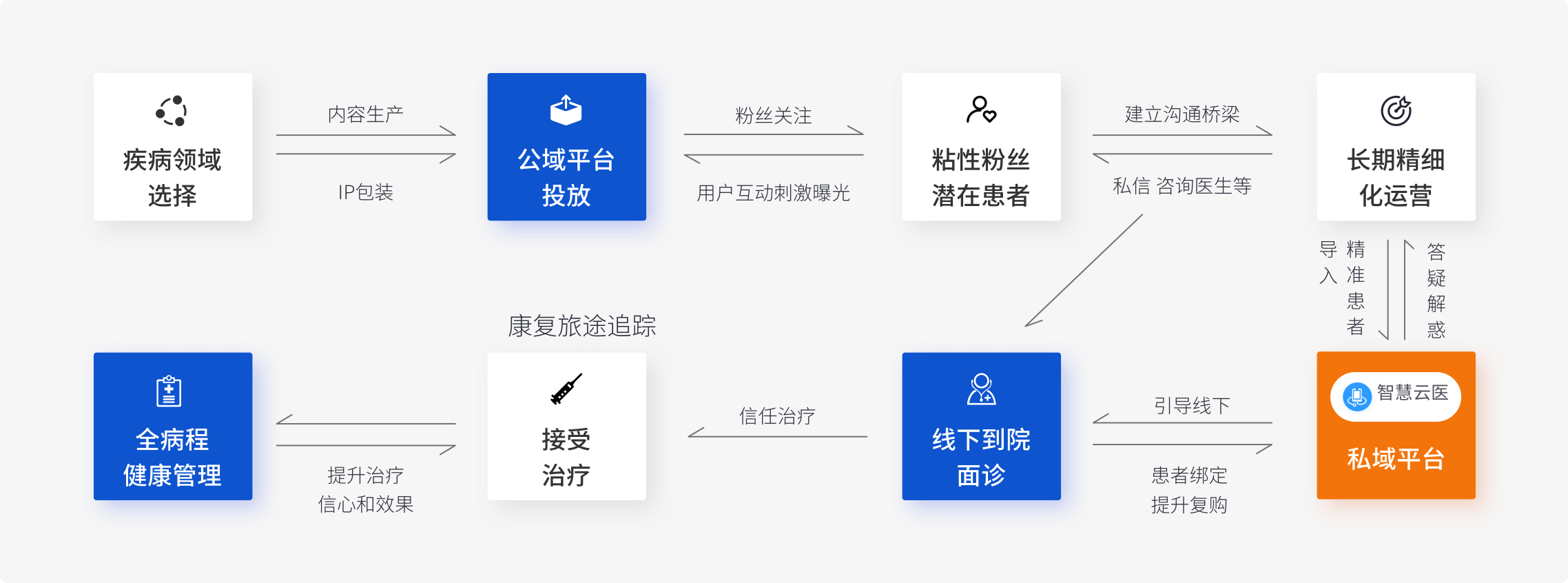 需要全程式科室ip孵化服务,帮助建立科室的专业品牌形象,提高医生和患者对科室的认可度;提升科室的学术影响力和行业地位,吸引更多优质资源和合作机会;企业通过新身份参与科室信息化赋能,从而促进产品观念的传输或转化为有效闭环,最终实现药&医“双向奔赴”