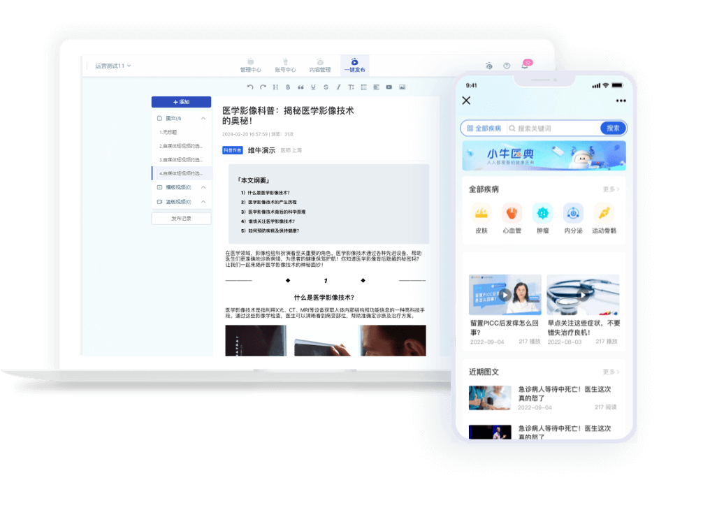 60+全媒体科普患教矩阵“小牛医典”,医士通智能科普平台图文、视频发布参数一键配置,轻松实现3分钟一键发布