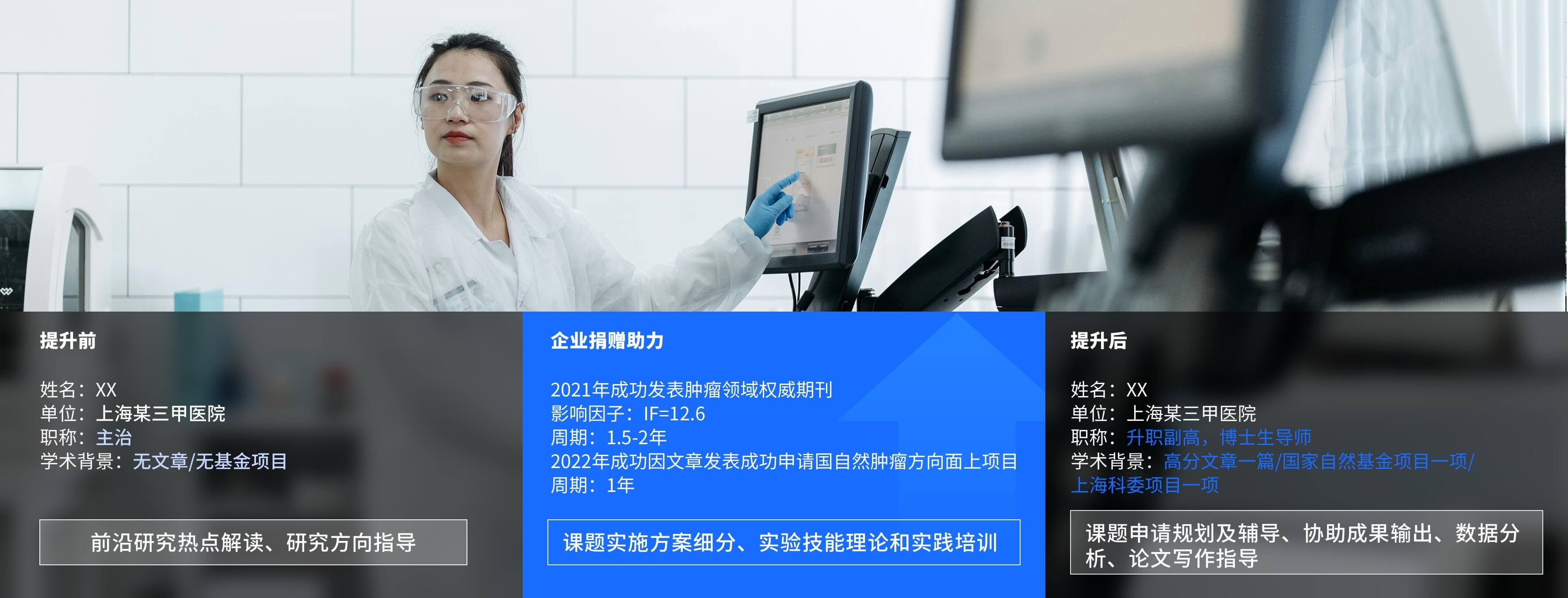 聚焦医生科研,以生命科学研究为基础,专注于研究成果转化及技术服务创新,建立了包含肿瘤生物学、病理学、免疫学、细胞生物学、生物化学与分子生物学以及动物实验等学科的研究服务体系。